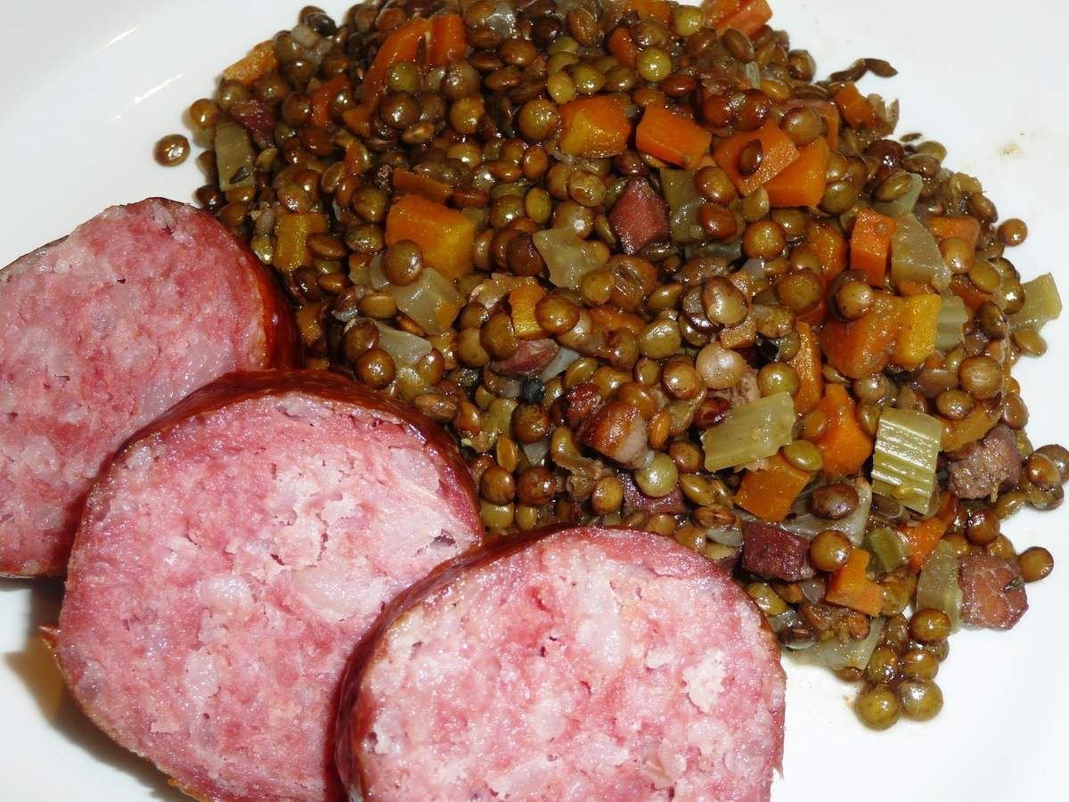 J’ai accompagné mes lentilles d’un magnifique saucisson acheté chez mon boucher préféré. On s’est régalés !