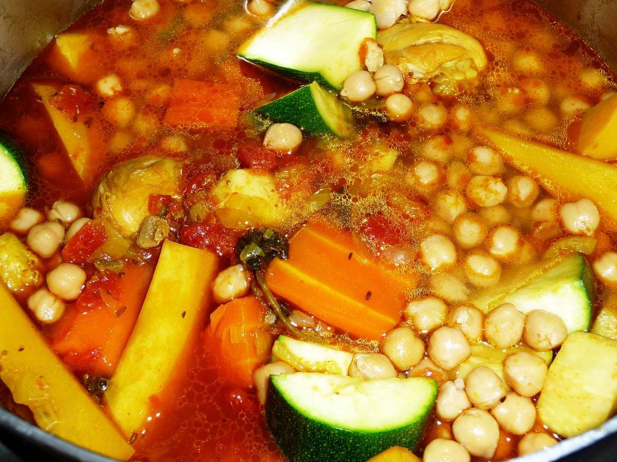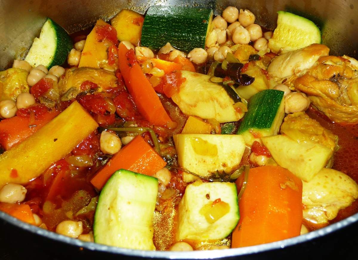 6) Couper les extrémités des courgettes mais ne pas les peler. Couper comme les carottes. Après les dernières 20 minutes de cuisson du point 5, ajouter les courgettes et les pois chiches égouttés. Ajouter de l'eau si nécessaire, de façon à ce que l'ensemble soit presque recouvert de liquide. Cuire encore 20 minutes, toujours à couvert sur feu doux. Pendant ce temps, nous allons préparer les boulettes.