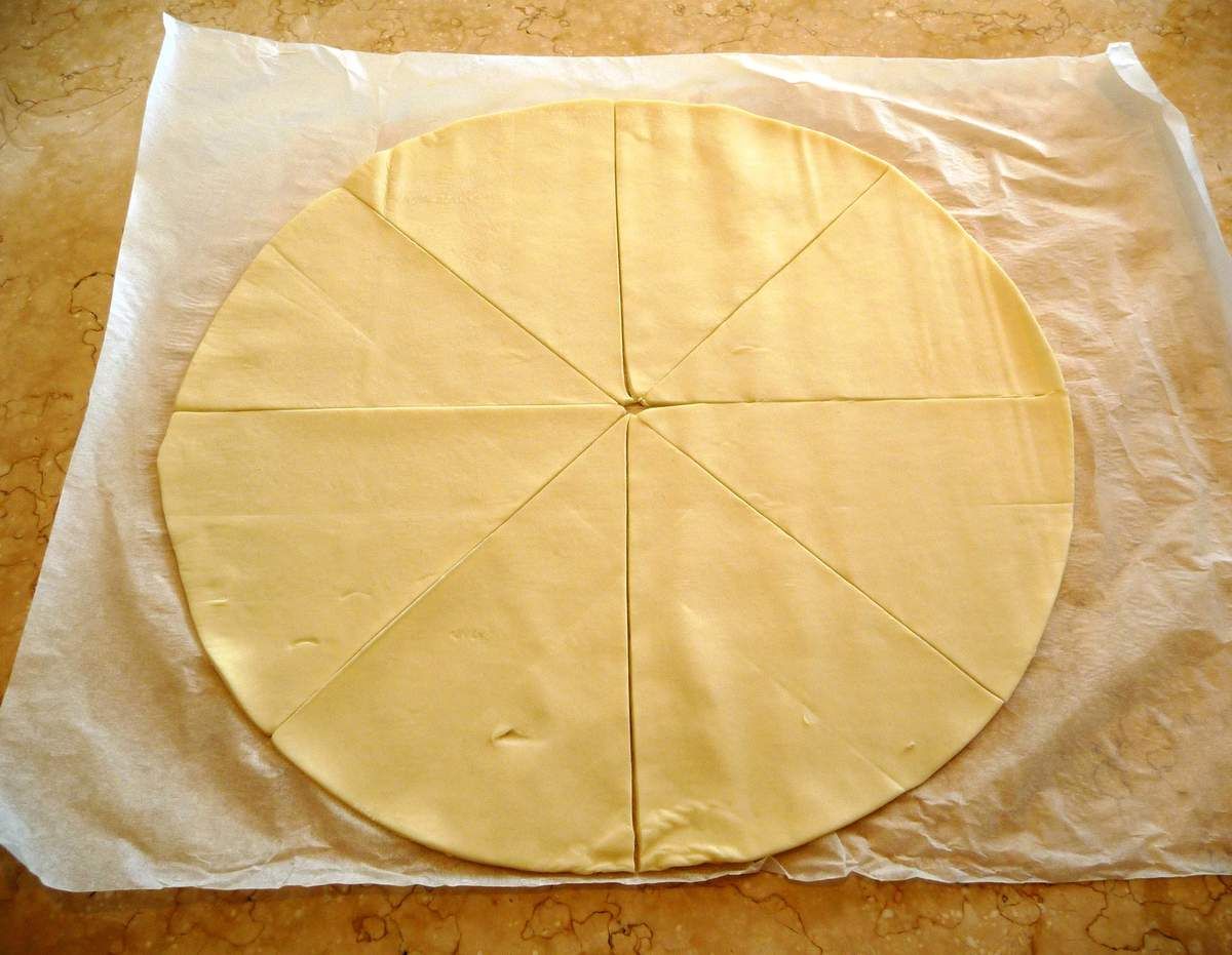 - 4 disques de pâte feuilletée abaissée (8 croissants par disque)