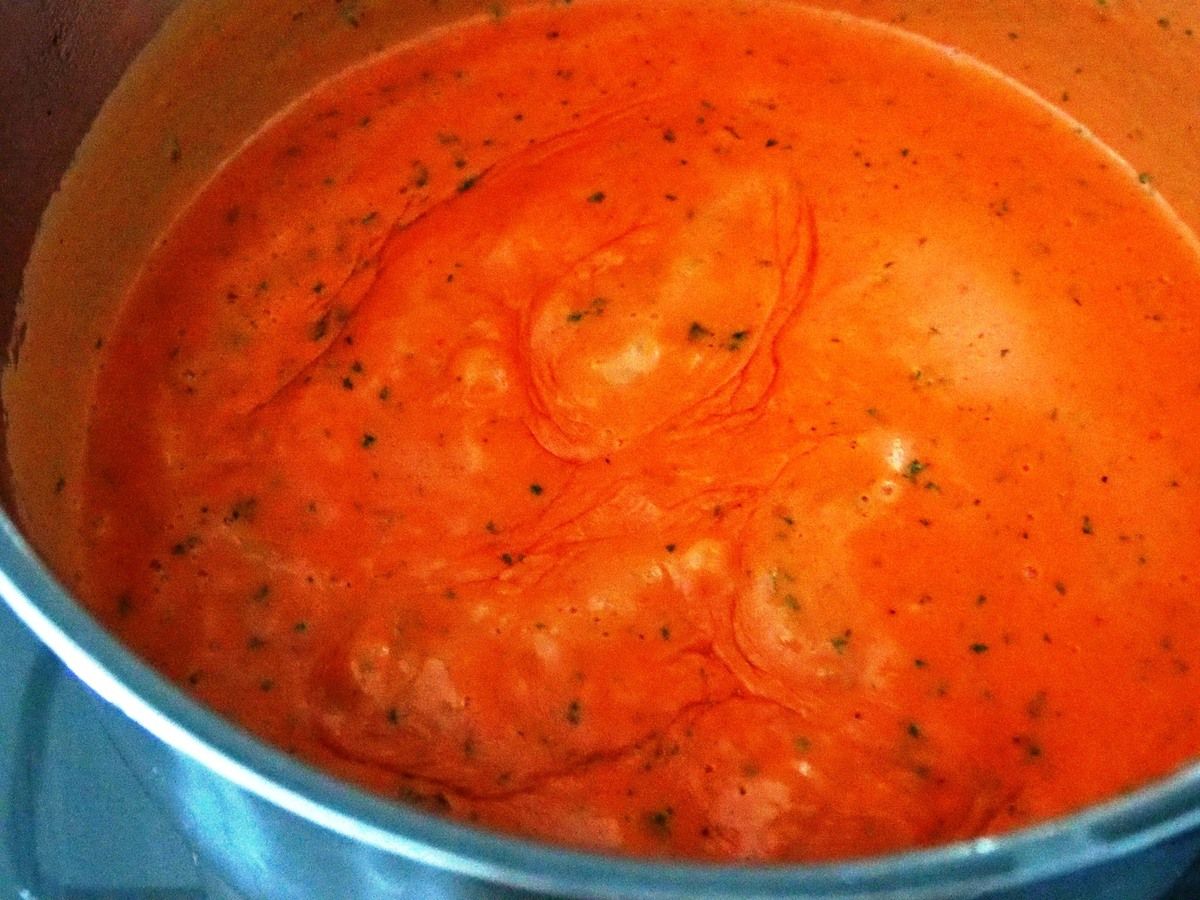 Vous vous dites sûrement "C'est quoi ça?" Et bien, ce sont les pâtes de mon enfance. C'est DELICIEUX!. Encore une fois, une recette de mon grand-papa, économique et savoureuse. Si vous connaissez les pâtes aux "Cinque Pi" (pomodoro, prezzemollo, parmigiano, panna, pepe), vous adorerez cette recette. Je ne mets pas de parmesan, mais du gruyère et j'utilise du concentré tomate en faisant un roux pour que la sauce soit onctueuse, à la mode de mon grand-papa, vraiment!