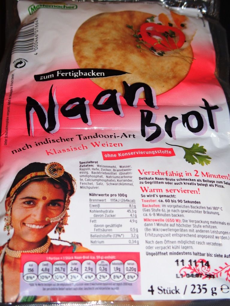 - 8 pains Naan (les petits de 13cm de diamètre environ, voir photo plus bas)