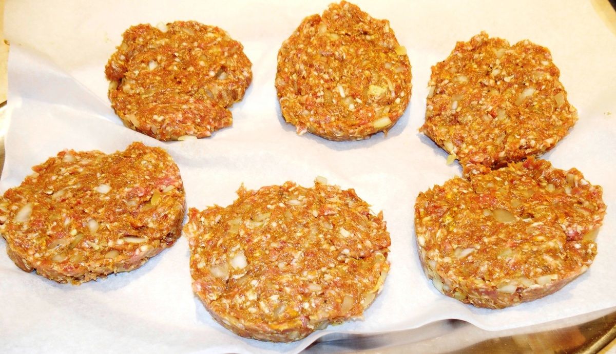 2) Avant de façonner les burgers, vous pouvez en tester l'assaisonnement en formant une toute petite mini galette ridicule et rapidement la saisir à la poêle. Enfin, à vous de voir. Parce que goûter à cru, c'est pas terrible... Sinon, faites-moi et faites-vous confiance! Façonner des burgers d'environ 10cm de diamètre et 1,5cm d'épaisseur. Moi j'ai utilisé un emporte-pièce que j'ai rempli de moitié puis j'ai aplati le tout avec le fond d'un verre. Disposer les burgers sur du papier sulfurisé dans un plat.