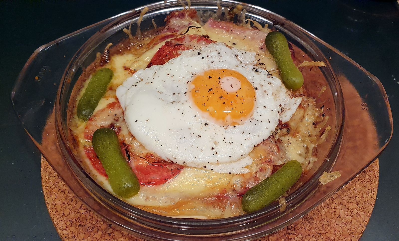 ouah,, excellent. je fais souvent des croutes au fromage jambon et œuf au plat mais ce plat ci apportera un renouveau.... je mets du vacherin fribourgeois doux à la place du raclette, c'est un peu moins &quot;caoutchouc&quot; quand ca refroidit.<br /> merci encore et je vais essayer cette recette tout soudain.....