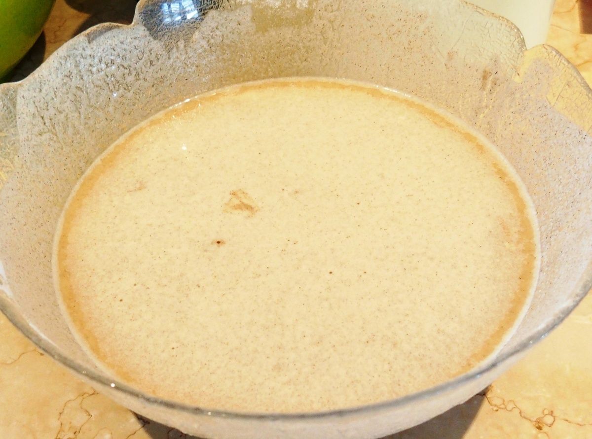 1) Dans un grand récipient, mettre la farine et faire un puits. Y déposer l'oeuf entier, le miel et le sel. Verser la moitié de l'eau et mélanger en ramenant la farine au centre avec une spatule. Lorsque la pâte est lisse, verser le reste de l'eau et bien mélanger. Laisser reposer quelques heures à température ambiante.