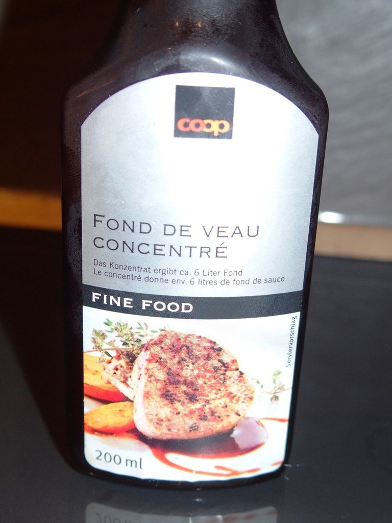 J'utilise souvent du fond de veau concentré dans mes recettes. Parce que j'en ai trouvé un qui est vraiment top de chez top et que vous trouverez à la Coop au rayon des cubes de bouillons et autres. Il en faut très peu pour donner un super goût aux sauces, alors vous pourrez le conserver longtemps au réfrigérateur. Je vous le conseille vraiment (photo plus bas). Sinon vous pouvez aussi utiliser du fond de veau en poudre ou du fond de volaille en poudre ou en cubes (mais le goût est différent et moins prononcé).