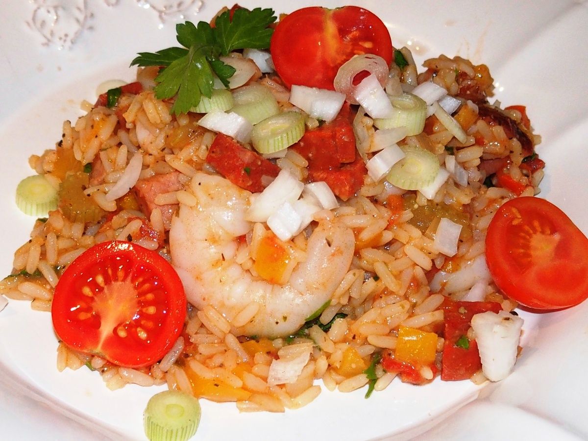 Il existe de multiples sortes de jambalaya. Avec du poulet, des écrevisses, des gambas. Comme pour la paella, on y met ce qu'on aime. Ma recette sert donc de base. A vous d'adapter les ingrédients selon vos goûts!