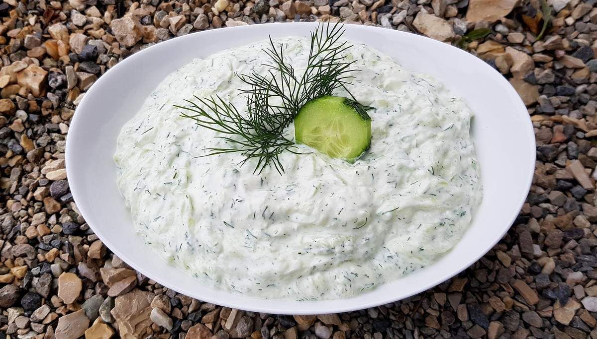 Recette grecque par excellence, à base de yaourt (grec donc), de concombre, d'ail et d'aneth. Certaines recettes comportent de la menthe au lieu de l'aneth, c'est parfait aussi, même si cela ressemble plus à ce moment-là à un tzatziki ... libanais.