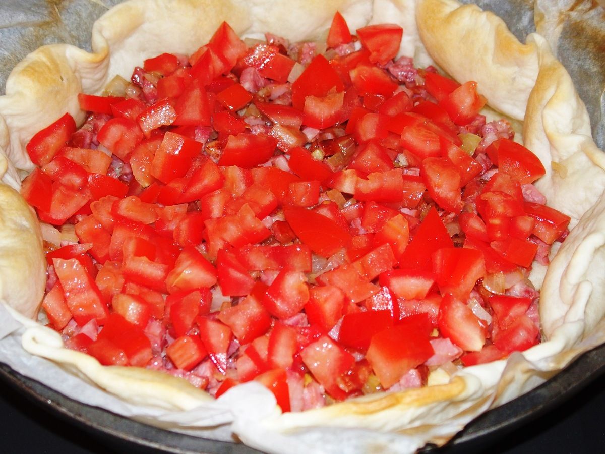 Je vous présente une super copine. Parce que je l'adore. Une délicieuse tarte au fromage de chèvre et tomate, avec des petits lardons. Elle est juste parfaite.