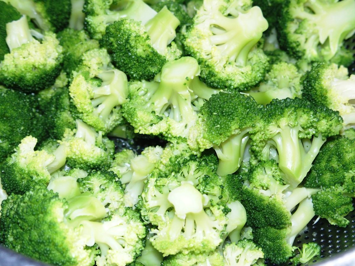 1) Passer les brocolis sous l'eau froide. Découper les sommités avec un couteau. Mettre de l'eau à bouillir dans une casserole avec 1 càc de sel. Baisser à frémissements et ajouter les brocolis. Laisser cuire 5 minutes et égoutter. Laisser tiédir.