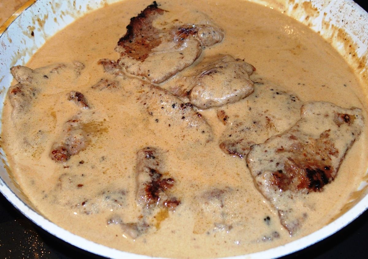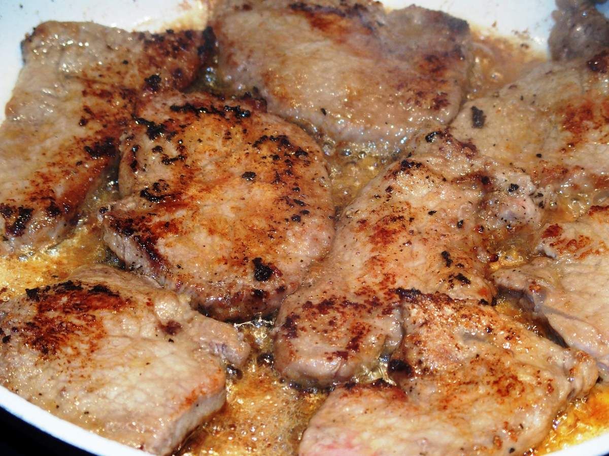 2) Faire fondre 50g de beurre dans une poêle et faire revenir les escalopes sur feu moyen-vif 5 minutes en les retournant. Saler et poivrer. Réserver la viande sur une assiette.