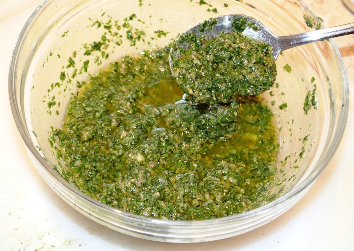 Salsa verde, sauce verte donc. Oui car cette sauce froide est italienne. Composée d'herbes fraîches comme le persil, l'origan frais, le basilic et la menthe. Moutarde, anchois, câpres, ail, vinaigre de vin et huile d'olive viennent compléter les herbes. Servie bien froide sur une tranche de viande (pensez à vos barbecues cet été), elle peut se préparer à l'avance et se conserver au réfrigérateur.