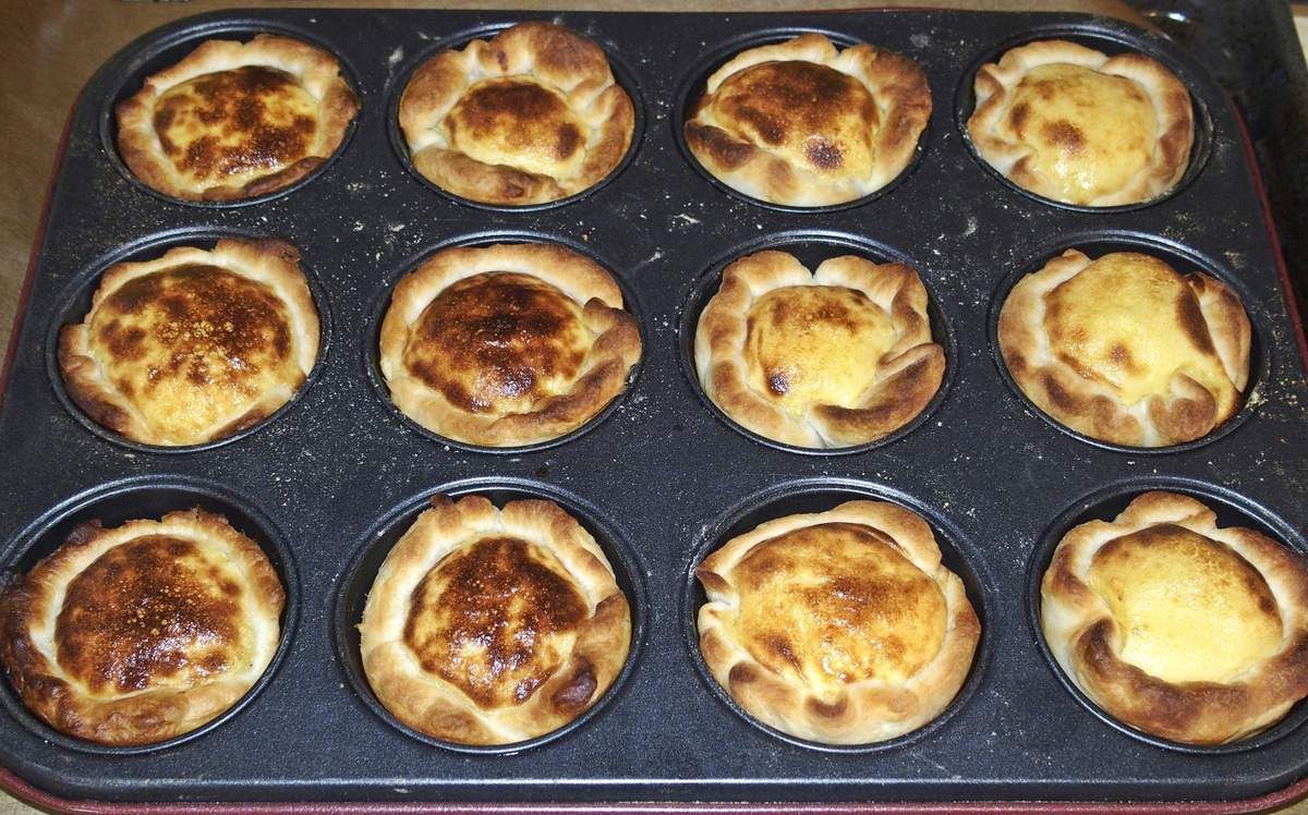 Je n'ai pas inventé cette recette, c'est clair. Je suis allée pêcher diverses idées sur le net. Certains font la pâte maison, moi j'ai pris de la pâte feuilletée déjà abaissée rectangulaire. J'ai utilisé un moule à muffins, c'est le top. Mais vous pouvez aussi prendre des petits moules à tartelettes. Les pasteis ne doivent pas être gros. L'idéal est de pouvoir les manger en deux ou trois bouchées.