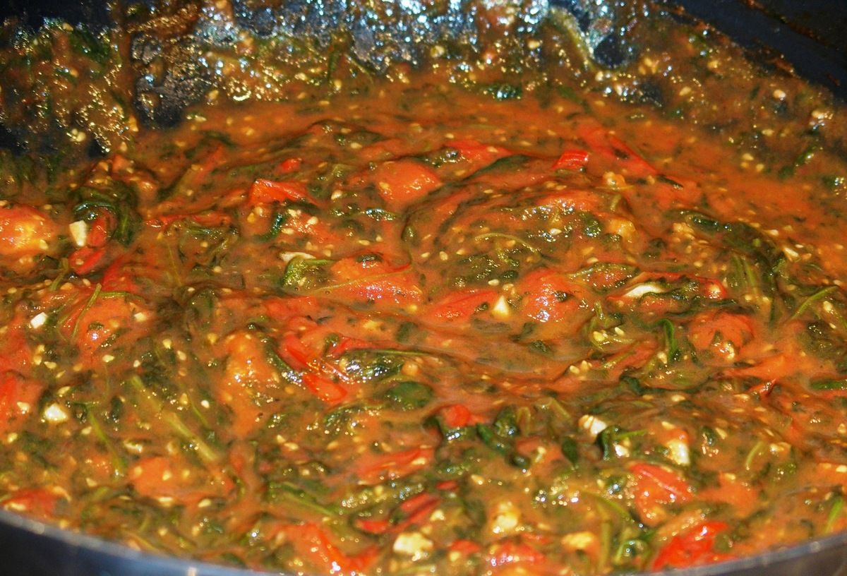 3) Ajouter la rucola cuite, mélanger et laisser cuire encore 5 à 10 minutes. Goûter et rectifier l'assaisonnement. Parallèlement, démarrer la cuisson des pâtes dans une grande casserole et râper un bon morceau de parmesan.
