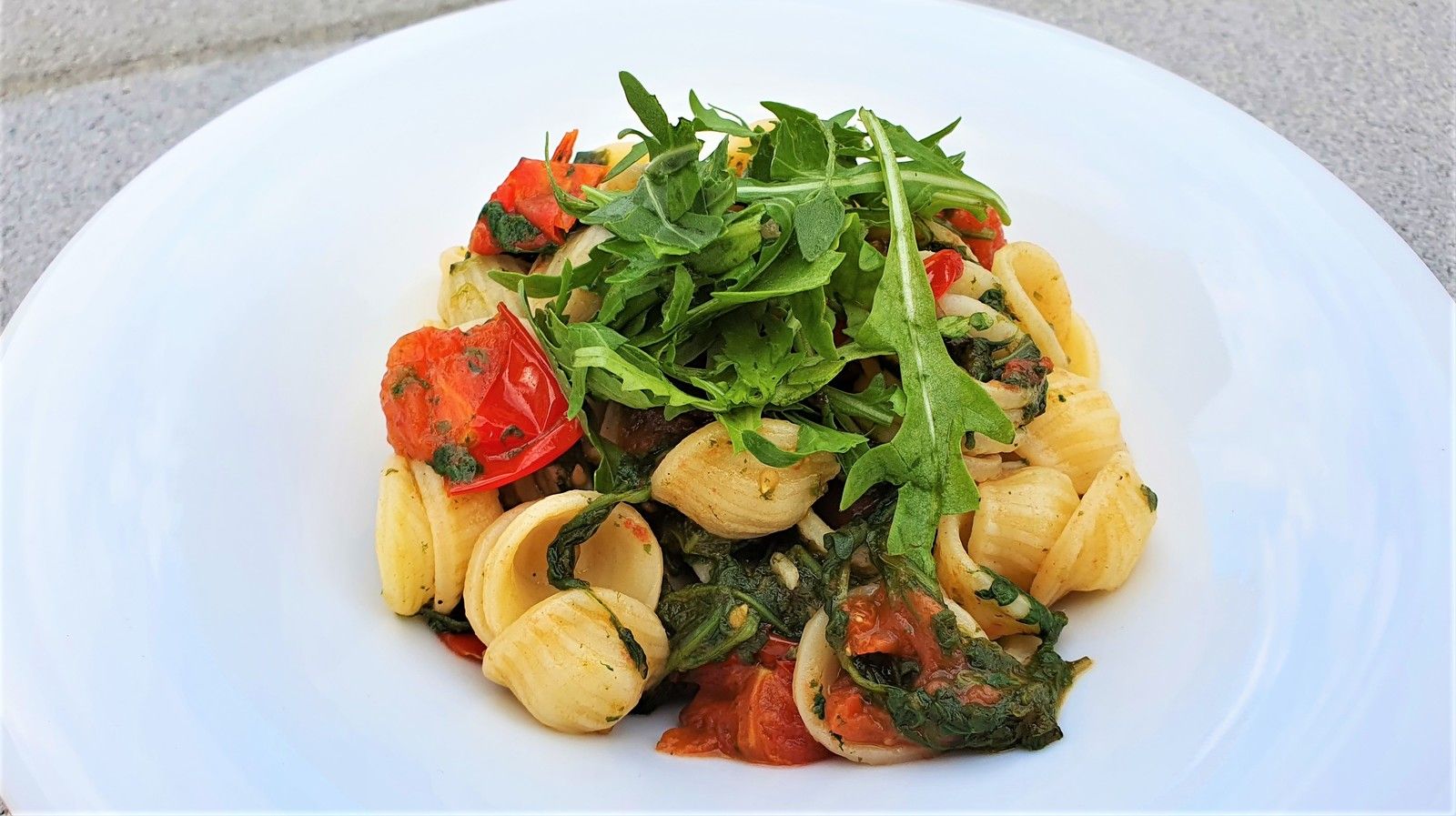 Allez on va se dire que l'été est là, ou du moins tout bientôt. Et on va pouvoir le deviner avec cette super recette de pâtes. De la rucola (de la roquette donc), des tomates cerises, de l'ail, de l'huile d'olive. Des ingrédients tout simples qui fleurent bon le soleil.