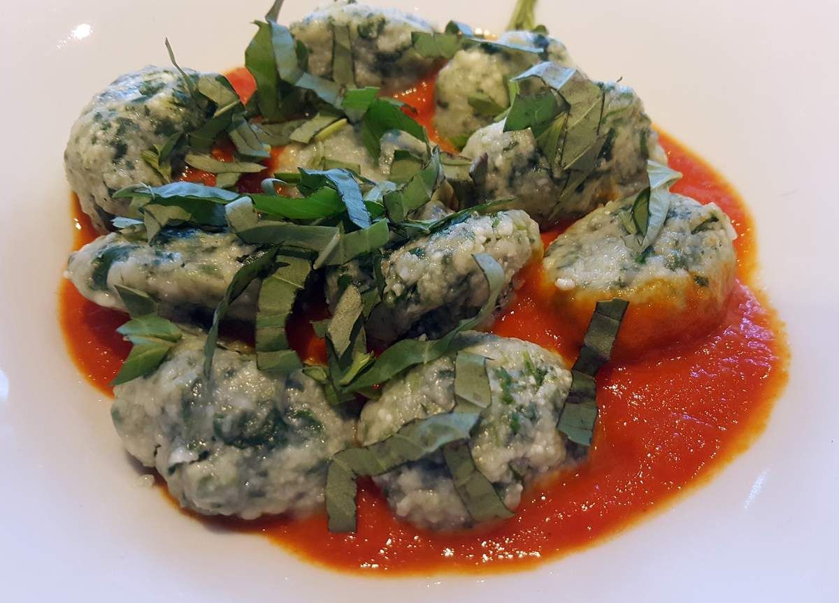 Gnudi aux épinards, à la crème de sauge ou sauce tomate
