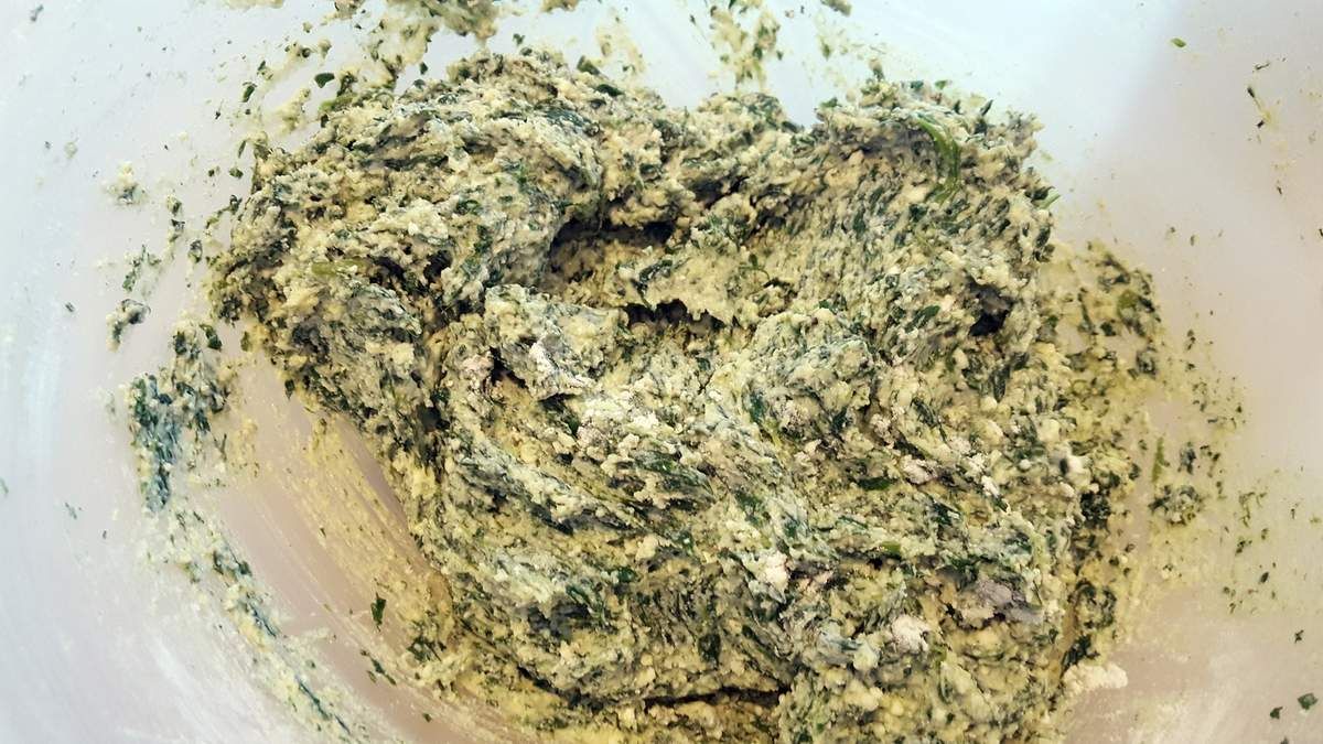 2) Dans le saladier, ajouter la ricotta, le parmesan, les oeufs légèrement battus et la farine. Poivrer et ajouter deux bonnes pincées de noix de muscade. Saler généreusement. Goûter et rectifier l'assaisonnement.