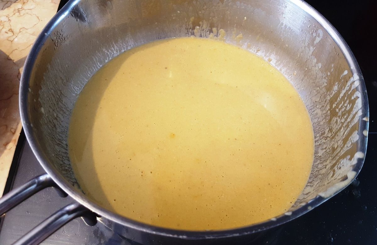 4) Après 20 minutes, passer la sauce au tamis ou au chinois par-dessus une autre casserole pour qu'elle soit bien lisse. Ajouter le jus de citron, saler et poivrer. Réserver.