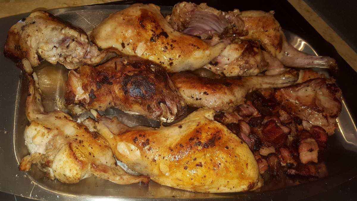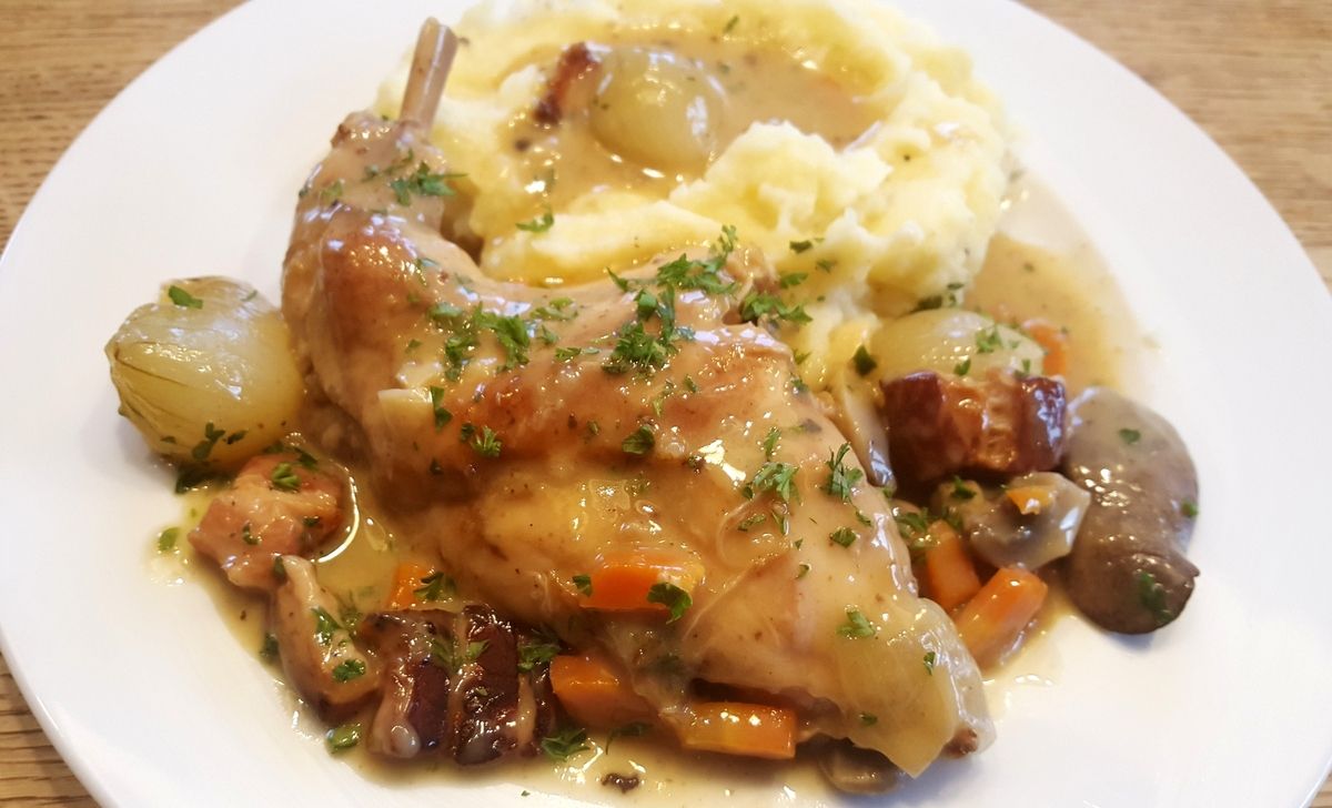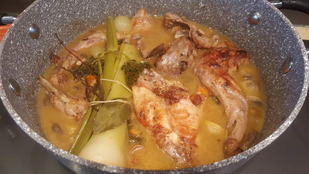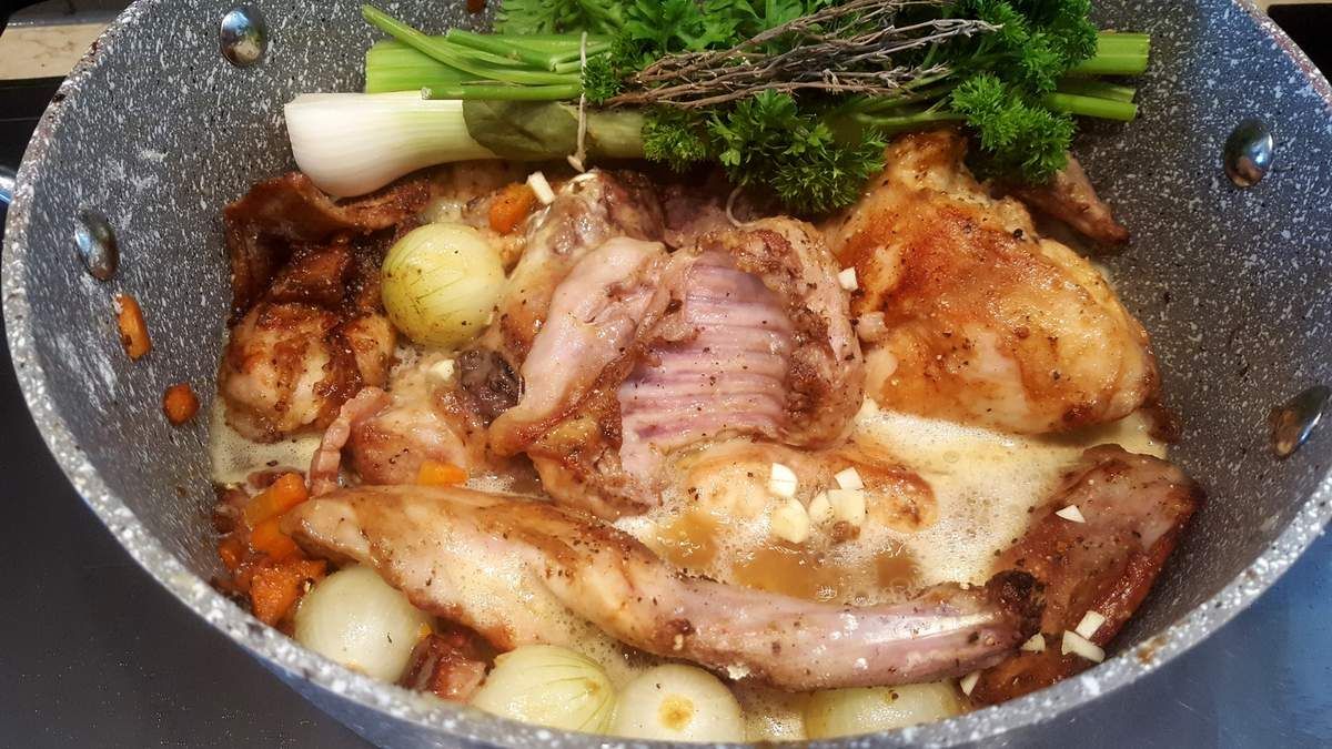 Lapin au thym, à l'ail et aux oignons nouveaux
