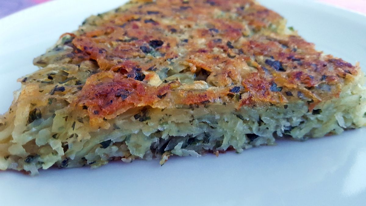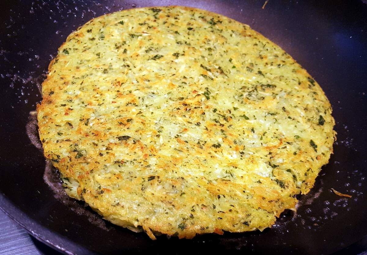 chez moi c'est un milhassou : les PdT sont rapées avec la grosseur de rape à carottes, donc un peu plus fin que dans votre recette, sinon idem pour le reste ; et c'est très bon avec une frisée ou du pissenlit (en saison) miam !!!!!