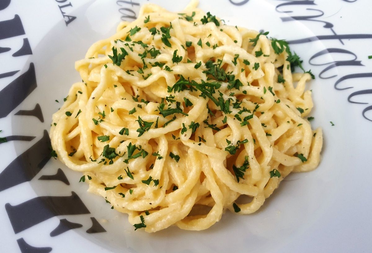 Ok je devrais plutôt les appeler: "pâtes à la crème façon carbonara aromatisées à l'huile de truffe". Mais ce titre serait un peu trop long.