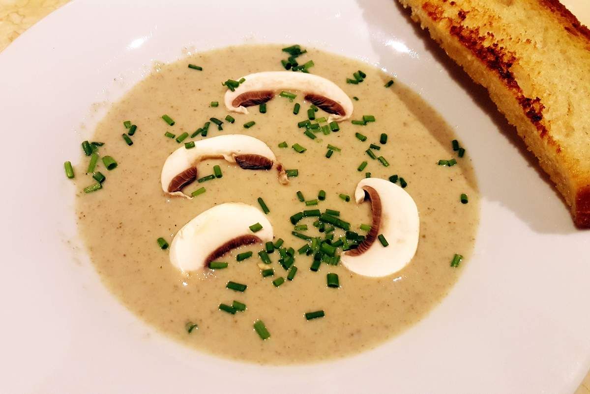 5) Couper les champignons réservés en lamelles. Verser la soupe bien chaude dans des bols ou des assiettes creuses. Déposer quelques lamelles de champignons sur la soupe et saupoudrer de ciboulette ciselée. Servir avec des tranches de pain légèrement rôties dans un peu de beurre ou toastées.