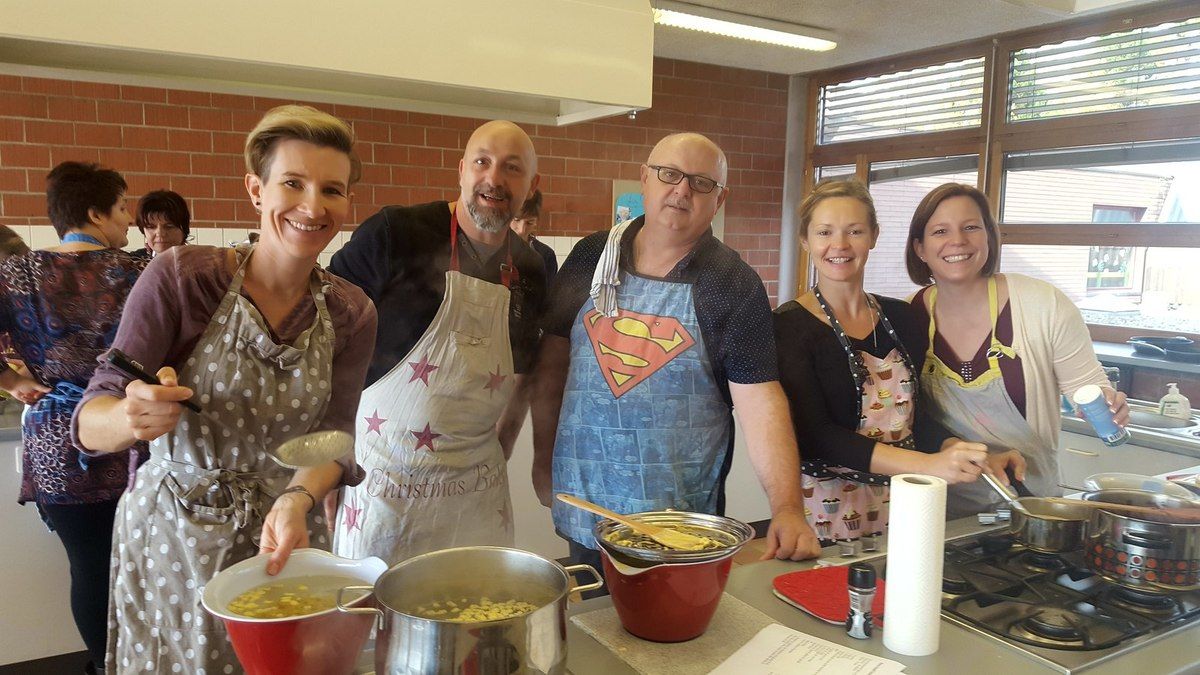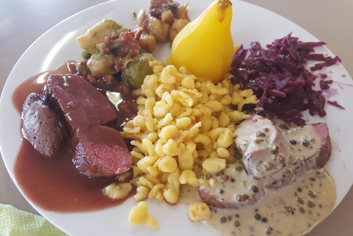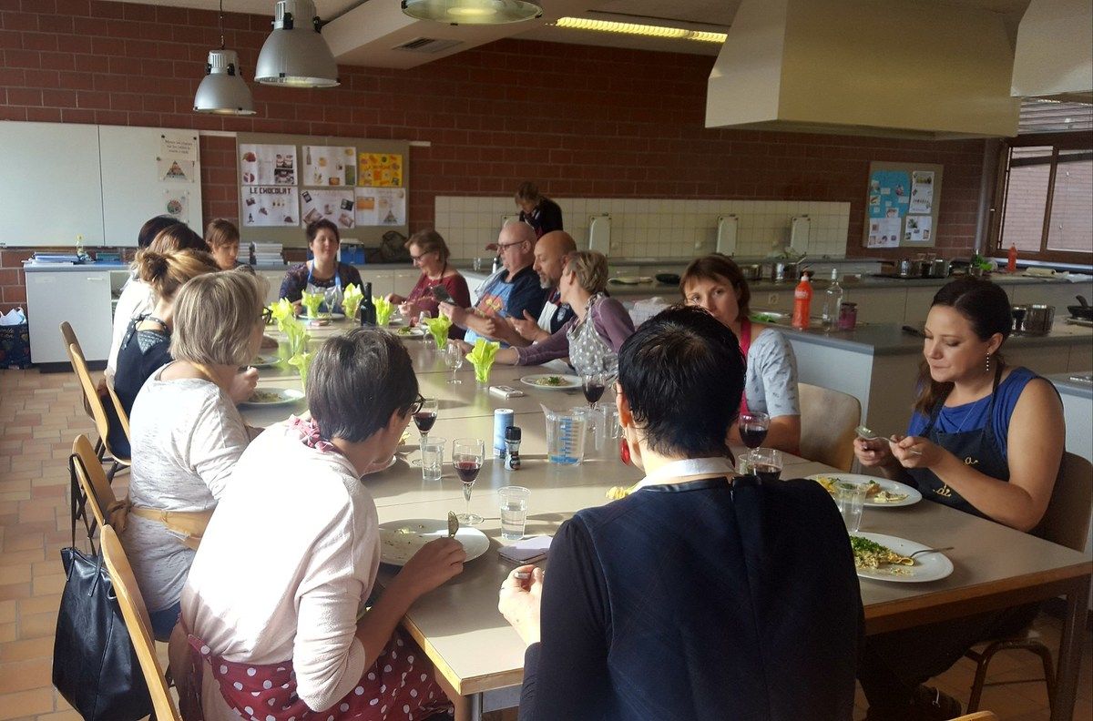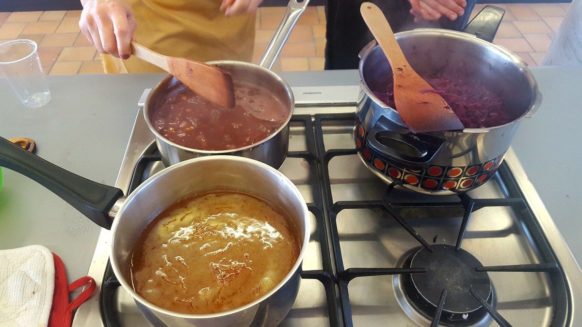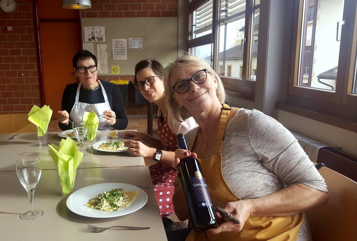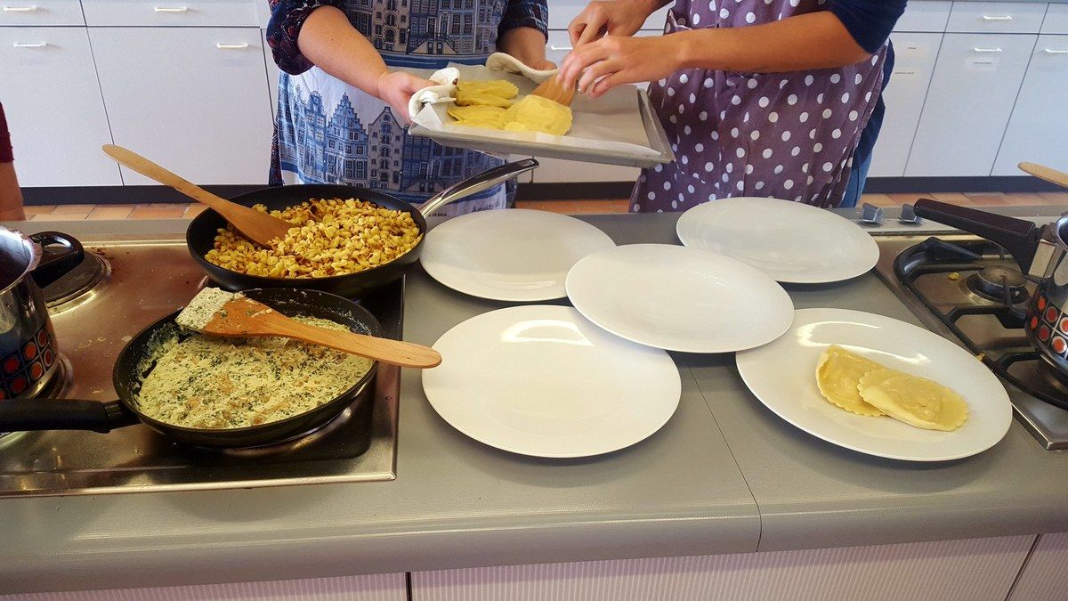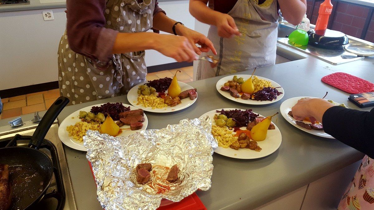 Et voilà. Un cours formidable sur la chasse, voici les photos. Ravioles farcies à la courge et ricotta sauce aux chanterelles. Et un magnifique filet de chevreuil cuit minute accompagné de ses garnitures, sauces poivre vert et Grand Veneur (recette à venir). Et 15 participants super enthousiastes, efficaces et drôles comme j'aime. La chasse est de saison, allez voir mes recettes!
