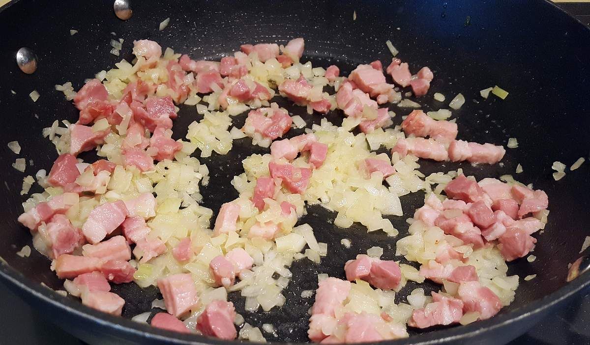 Bonjour! Recette faite à midi! J’ai loupé l’étape de la crème... c’était très bon quand même et du coup plutôt light! Et fait avec du lard en tranches coupé en lamelles!
