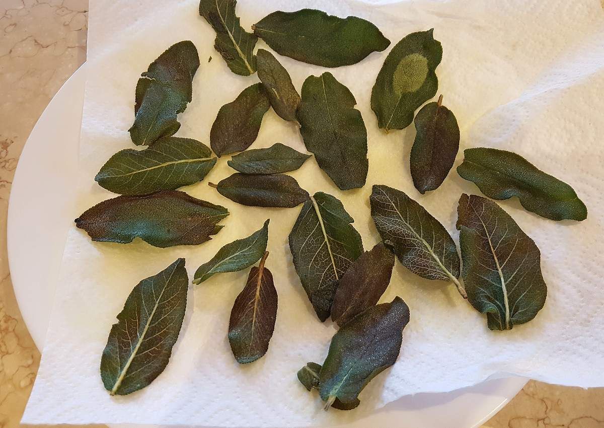 Et la petite touche sympa, des feuilles de sauge brièvement frites pour la déco.