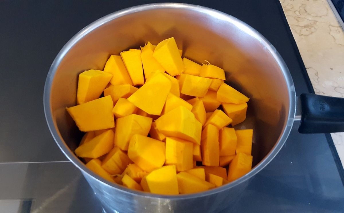 - un beau morceau de courge, potimarron, butternut ou autres pour en obtenir 700g après l'avoir pelée et vidée
