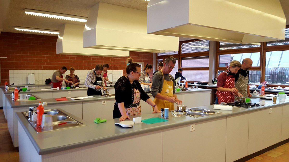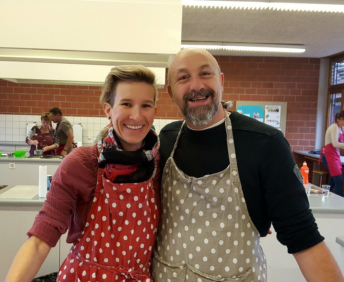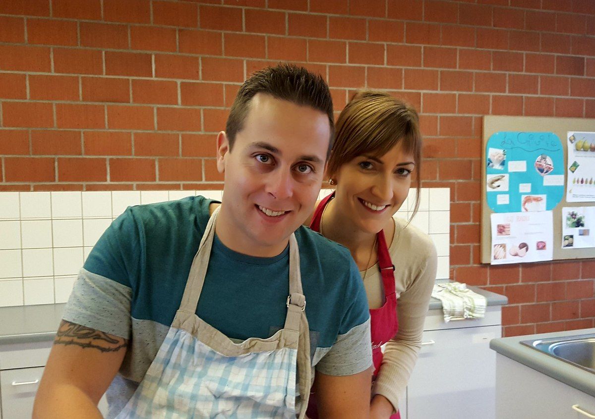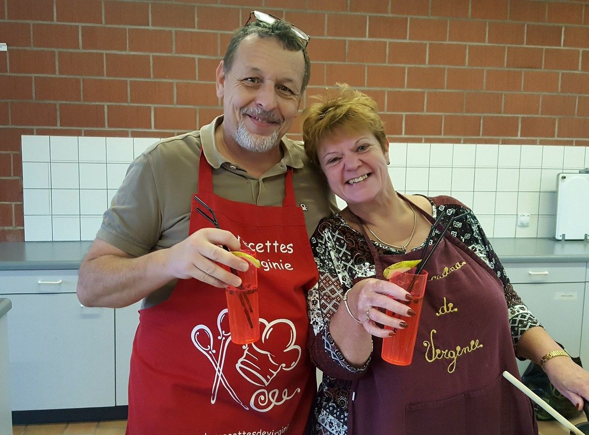 Alors là c'était vraiment top. Je fais encore un gros bec à mes 6 petits couples trop géniaux. Et à mon homme qui m'a épaulée. On a passé un moment super au cours de cuisine d'aujourd'hui. La cuisine à deux, que du bonheur. Au menu panna cotta de foie gras et coulis de fruits de la passion, coeurs de poulet teriyaki en brochettes, filets de daurade sur embeurrée de fenouil, sauce à la mandarine, filet mignon en cuisson lente, crème de truffe, purée au persil montée à l'huile d'olive et poêlée de carottes multicolores, poires pochées au vin rouge et aux épices sur crème anglaise au lait d'amandes. Du taf mais dans l'amûûûr et la bonne humeur.