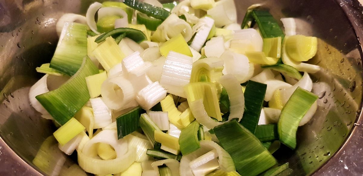 2) Couper le lard en dés (enlever le surplus de gras et les petits os) et réserver dans un bol. Peler les carottes et les couper en rondelles. Peler les gousses d'ail et les couper en lamelles. Peler l'oignon et le piquer avec les clous de girofle en passant à travers la feuille de laurier. Retirer la moitié du vert du poireau ou au moins l'extrémités des feuilles et couper le reste des feuilles avec le blanc en deux dans la longueur puis en petits tronçons. Laver le poireau sous l'eau froide pour éviter toute trace de terre. Peler les pommes de terre et les couper en cubes. Mettre tous les légumes ensemble dans un récipient.