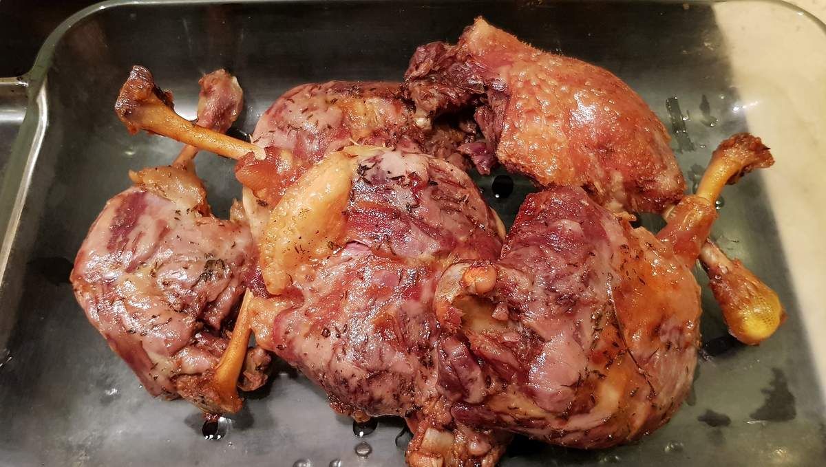 Alors, c'est tout simple, je les ai confites moi-même mes petites cuisses. Comme ça c'était réglé. Et je vous conseille d'essayer. C'est vraiment simple et délicieux. Dans cette recette, vous apprendrez donc à confire des cuisses de coin-coin. Et pour ceux qui en auraient déjà des confites, sautez la première étape, dégraissez vos cuisses et effilochez-les!