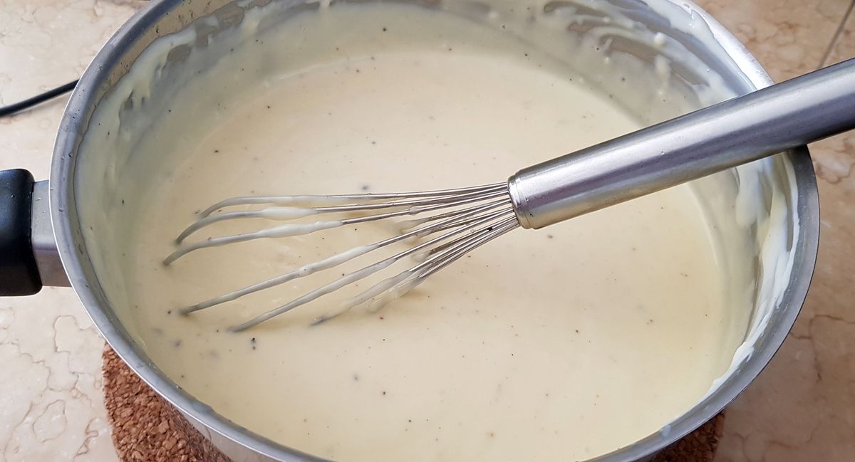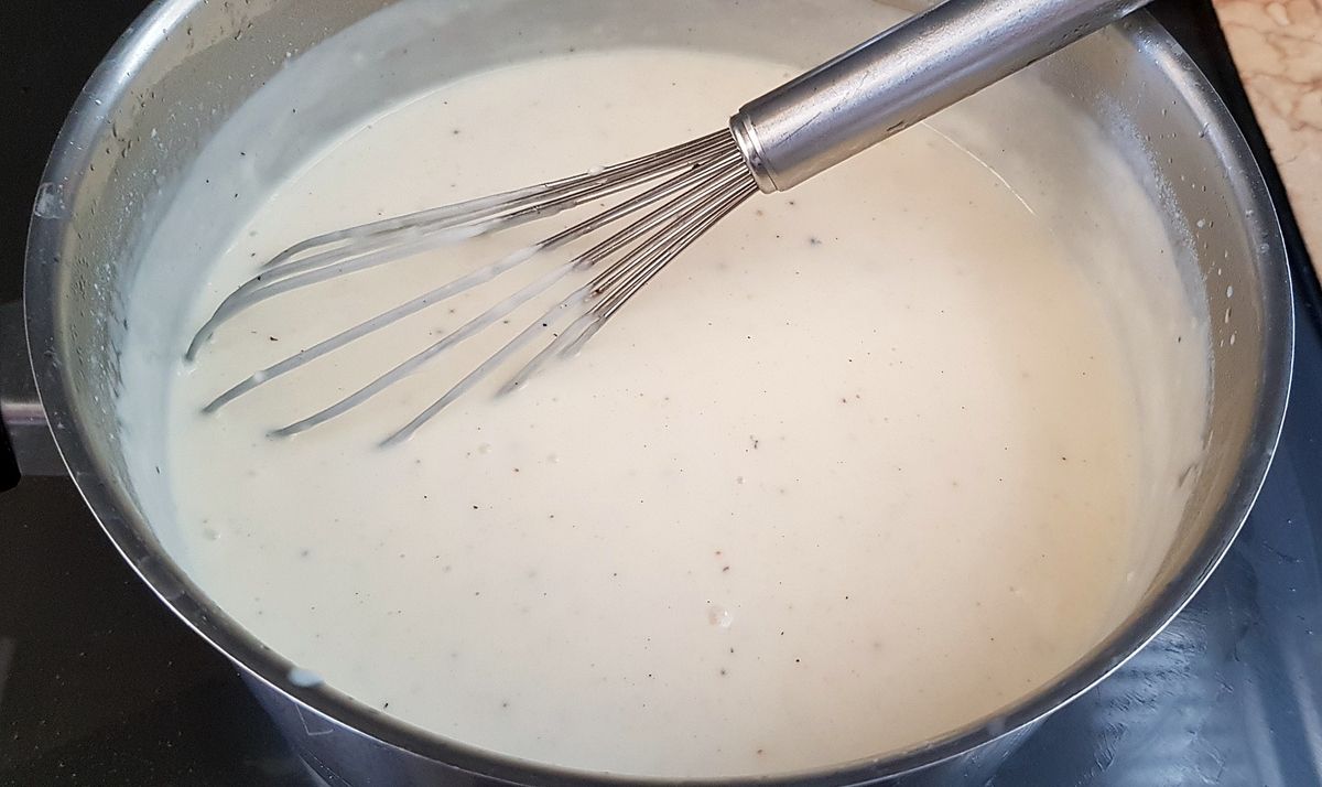 - recouvrir de la totalité de la béchamel, lisser avec une spatule