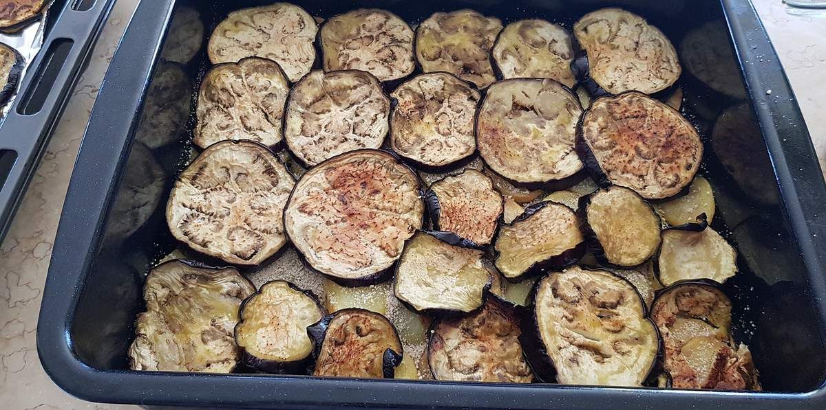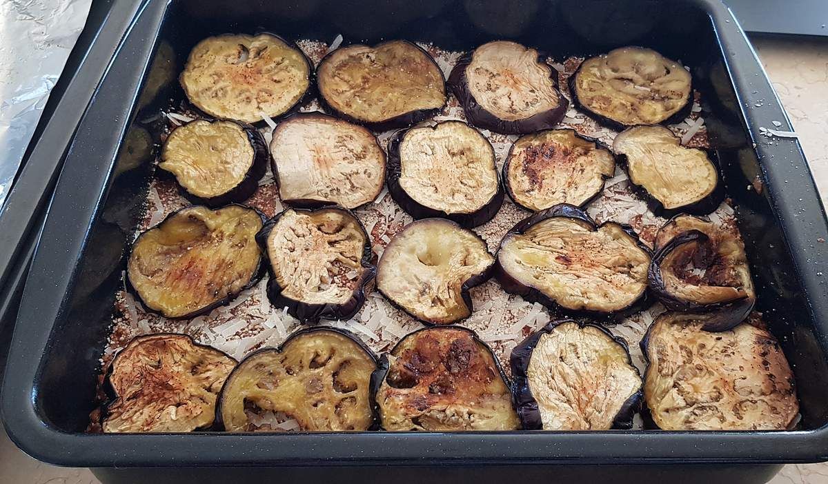 Pour ne pas obtenir une moussaka trop grasse, j'ai donc opté pour la cuisson des aubergines au four et non baignant dans l'huile d'une poêle. Et ça change tout.