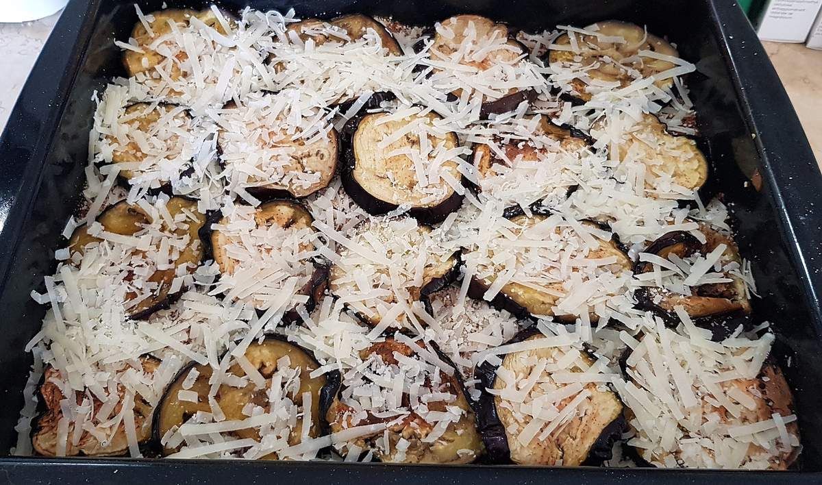 - déposer la moitié des aubergines (vous pouvez les faire se chevaucher légèrement)