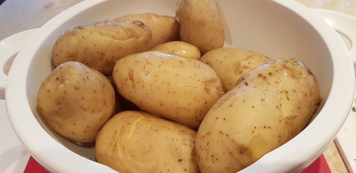 Ensuite, les patates ont leur importance. Prenez des pommes de terre qui ne se défont pas trop facilement à la cuisson et qui résistent aux températures élevées. Comme pour les frites. Mes préférées: la variété Agria. Les patates doivent être cuites la veille en robe des champs et laissées ensuite refroidir à température ambiante, pour éviter qu'elles ne prennent de l'humidité au réfrigérateur. Certains les mettent au réfrigérateur, moi je les laisse dans un récipient à couvert sur mon plan de travail.