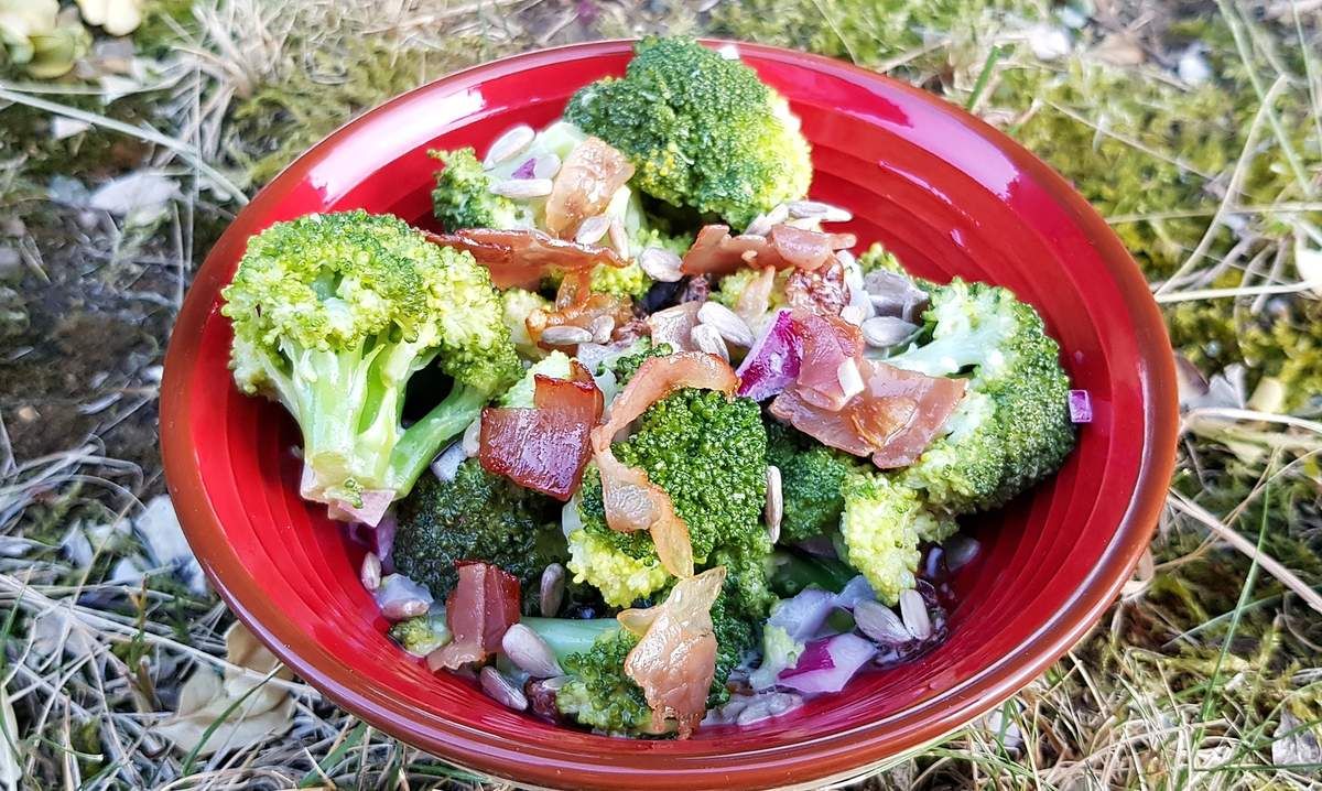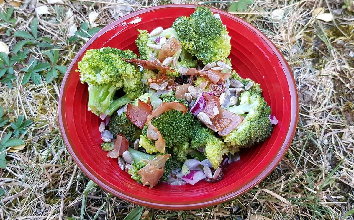 Salade de brocolis aux raisins secs, bacon et graines de tournesol