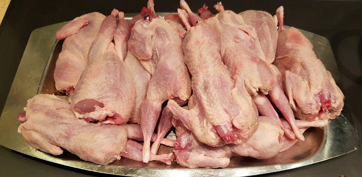 2) Rincer chaque caille sous l'eau froide, à l'intérieur et à l'extérieur. Bien les essuyer et les disposer sur un plat.