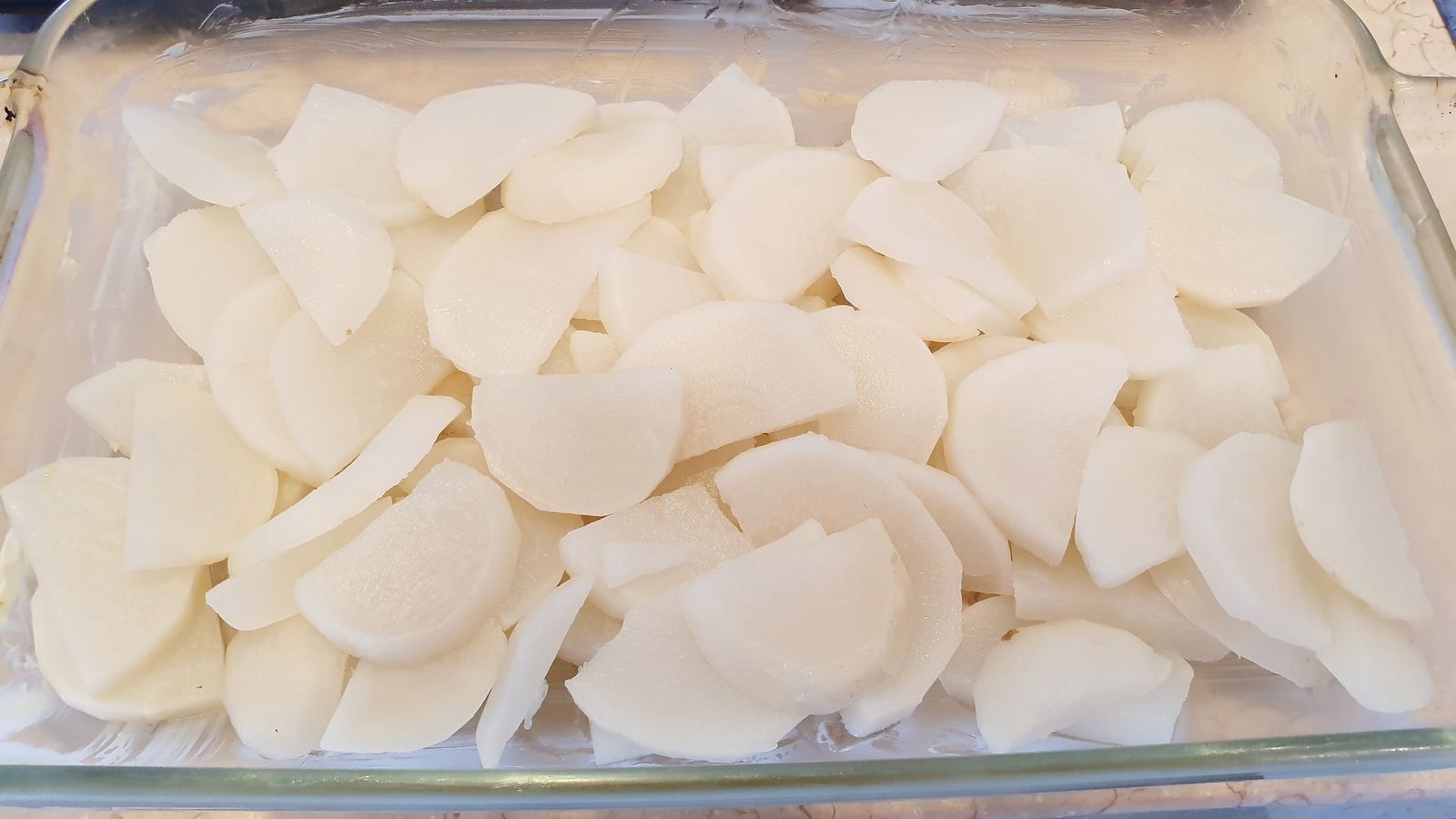 3) Beurrer un plat à gratin. Verser les raves puis les recouvrir avec la béchamel. Enfourner au milieu du four pour 20 minutes. Sortir, laisser reposer 2 minutes et servir en accompagnement d'une viande ou d'un poisson.