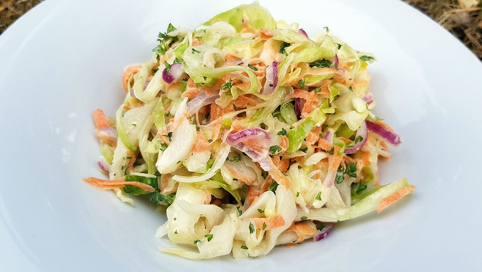 C'est en Amérique du Nord que nous allons chercher cette salade de chou délicieuse, réalisée avec des carottes, des oignons rouges, du persil et une super mayonnaise. Le chou est "cuit" grâce au sel et au sucre puis rincé soigneusement. Et oui, c'est ainsi qu'elle sera parfaite, votre salade Coleslaw.
