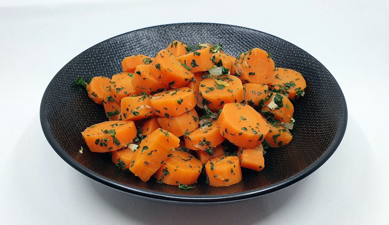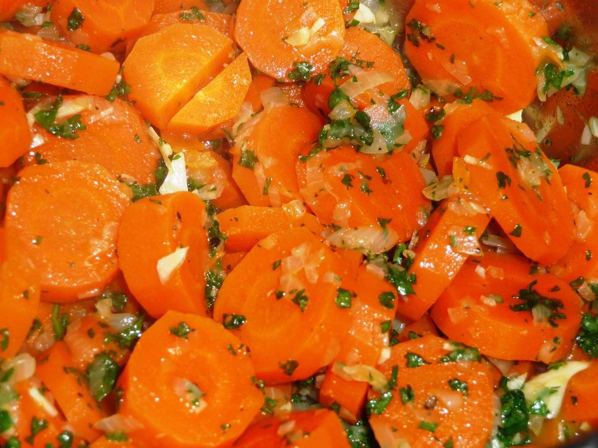 5) Lorsque les carottes sont cuites à votre goût, les égoutter et les remettre dans la casserole. Ajouter le persil. Goûter et saler si nécessaire.