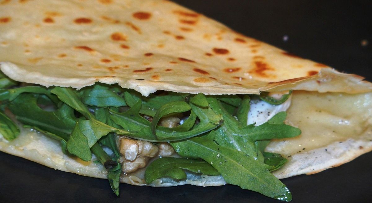 Crêpes - garniture au fromage de chèvre, noix, roquette et miel