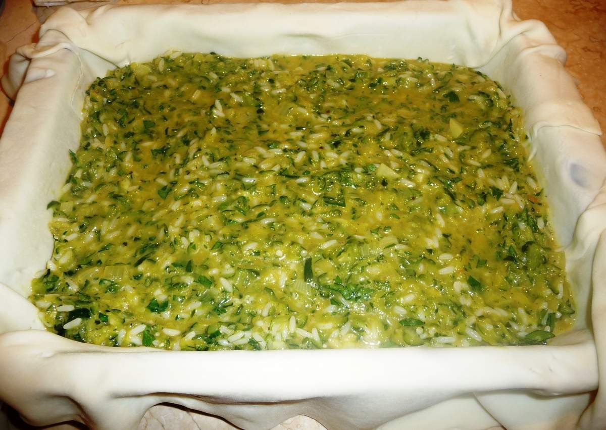 De délicieuses courgettes assaisonnées comme il faut, une liaison à base d'oeufs, d'un peu de riz et de fromage, tout cela enrobé dans de la pâte feuilletée C'est excellent...
