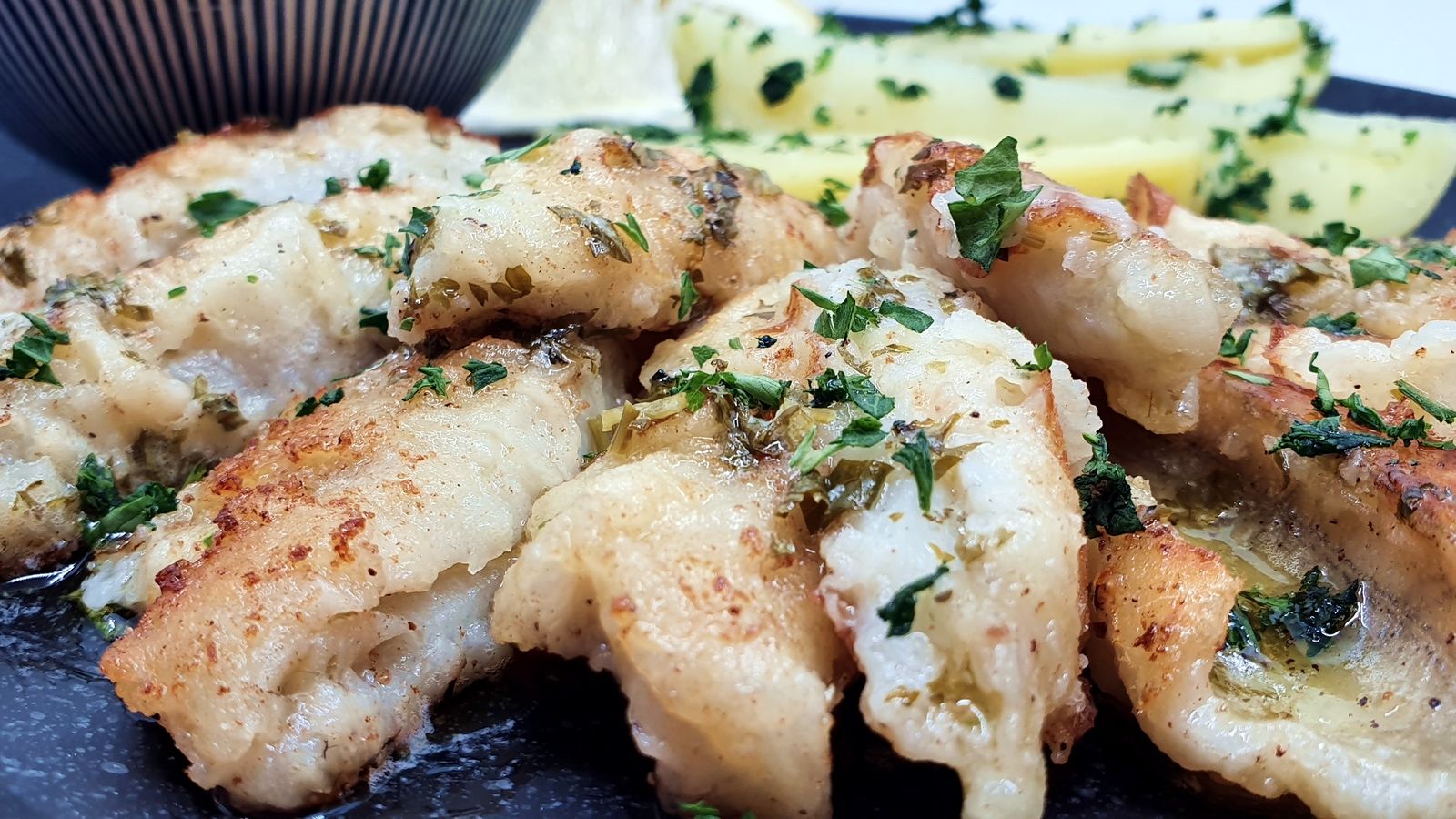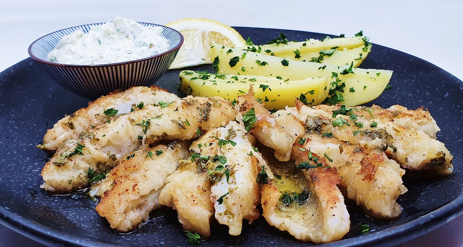 7) Servir les filets de perche joliment dans une assiette, ajouter un peu de beurre persillé au dernier moment. Accompagner de la sauce tartare et des pommes de terre, avec une rondelle de citron pour assaisonner les filets au dernier moment.