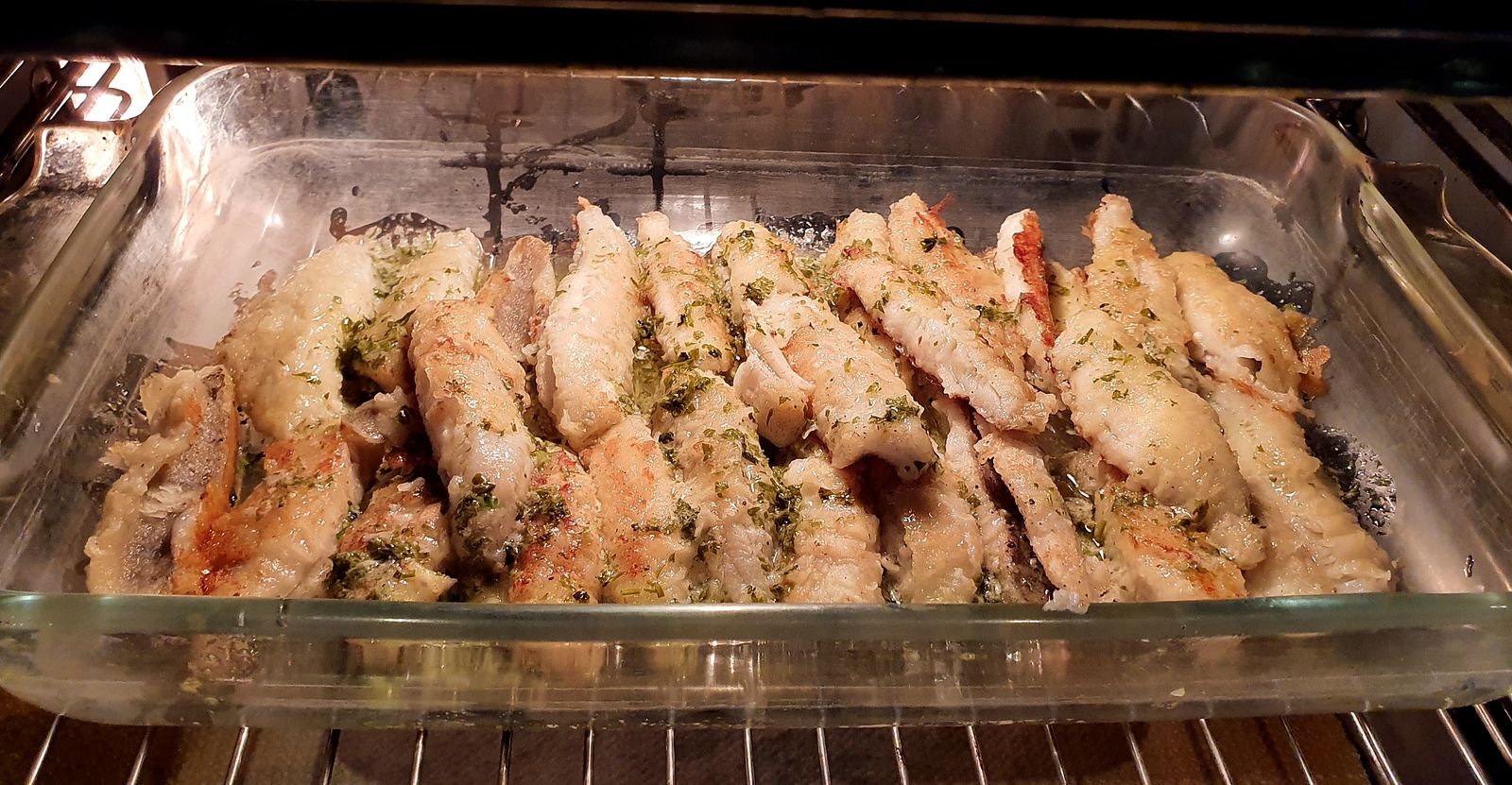 5) Dans une poêle, faire fondre un peu de beurre à feu moyen. Faire cuire les filets de perche côté chair d'abord pendant 2 minutes (c'est très important sinon ils se recroquevillent). Puis les retourner sur la peau et les faire cuire 1 minute. A ce moment-là, SALER ET POIVRER. Disposer les filets dans le plat au four et recouvrir d'un peu de beurre persillé-citronné afin d'éviter qu'ils ne se dessèchent. Procéder en plusieurs fois jusqu'à ce que tous les filets soient cuits, sans oublier à chaque fois de les recouvrir de beurre persillé.