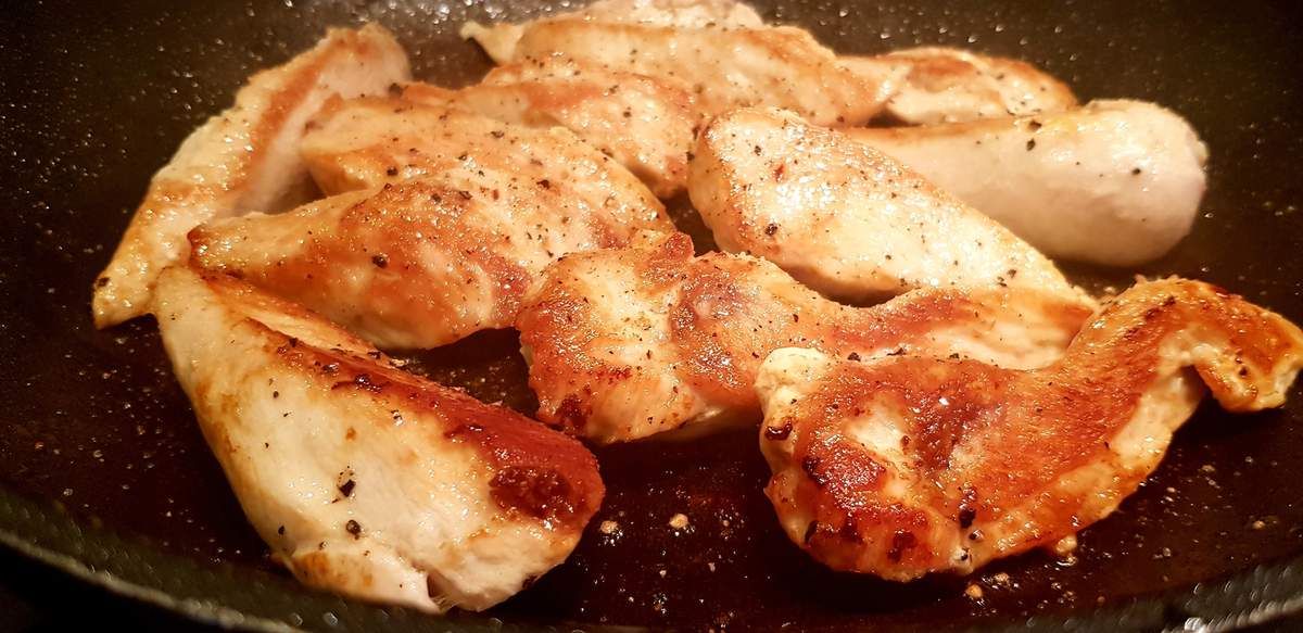 1) Couper vos escalopes en 3 ou 4 dans la longueur. Si vous avez acheté directement des filets, ne faites rien:-). Dans une poêle à haut rebord, faire chauffer un filet d'huile à rôtir. Faire revenir sur feu vif les filets de poulet jusqu'à ce qu'ils soient dorés: d'abord sur une face sans les toucher quelques minutes et quand ils sont dorés, les retourner sur l'autre face pour les cuire encore quelques minutes. Saler et poivrer. Réserver la viande dans un récipient. Dans la poêle, ajouter une tombée de vin blanc et déglacer en mélangeant une minute avec une spatule. Mettre ce jus avec le poulet.