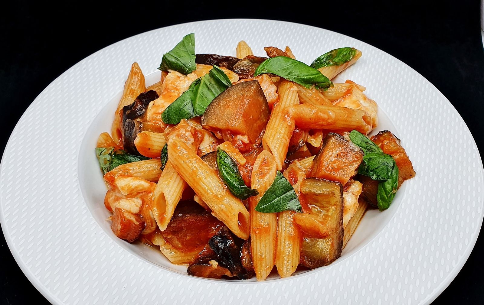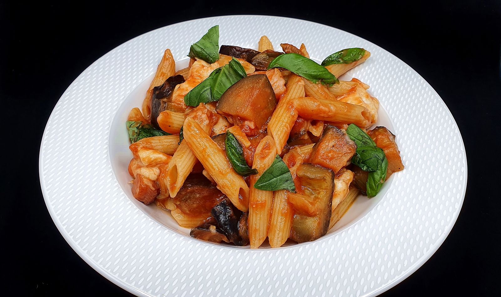 Basilic frais, mozzarella di buffala, parmigiano, aubergines, tomates.