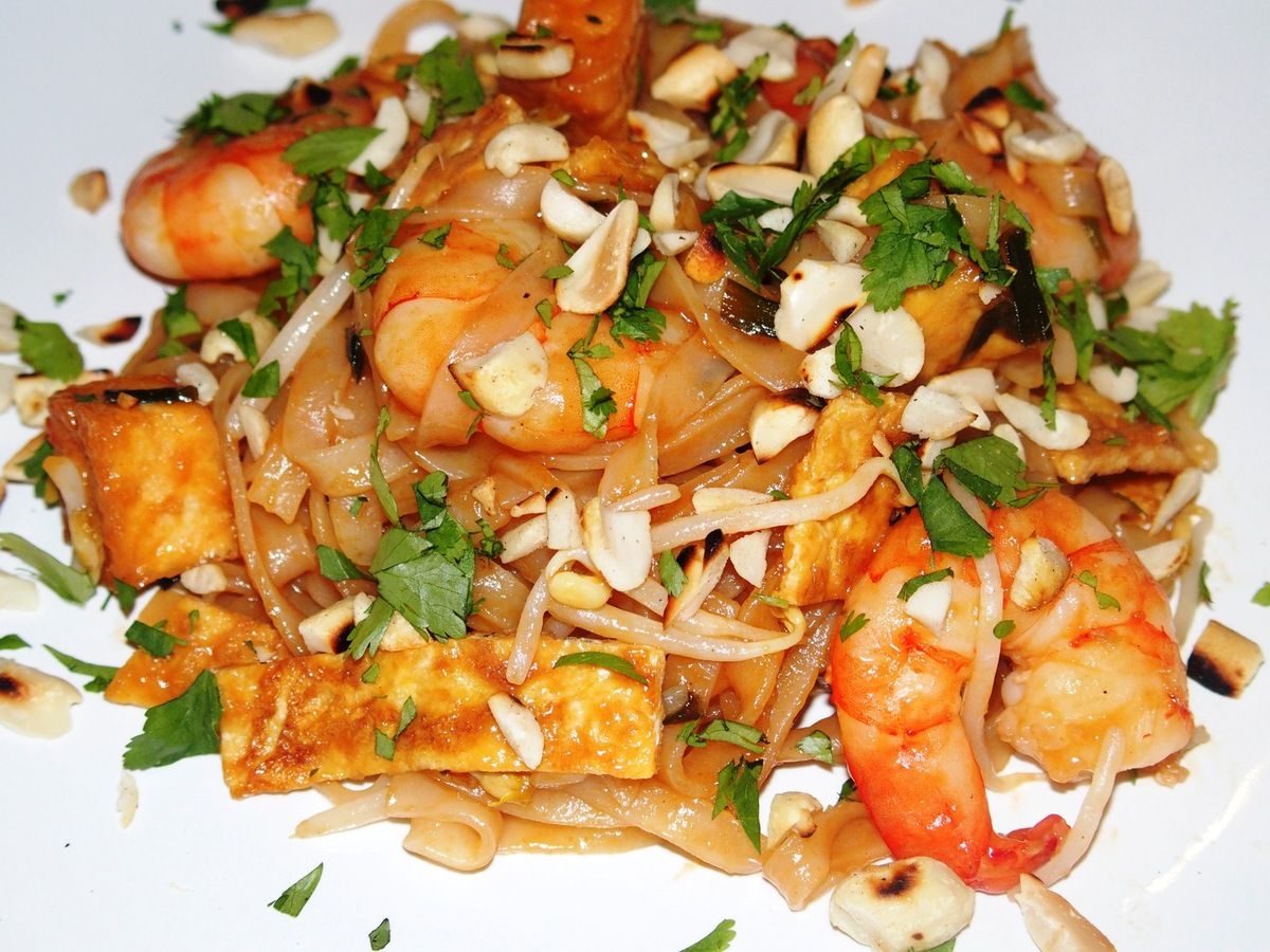 Voici une recette que je fais depuis longtemps et que je viens de rééditer. Nouvelles photos, nouvelle marche à suivre. Vous m'en direz des nouvelles! Si vous aimez la cuisine thaïlandaise, vous allez aimer ces bonnes petites nouilles de riz accompagnées d'ingrédients bien spécifiques: des crevettes, des oignons de printemps, des lanières d'omelette, des feuilles d'ail, du tofu, des pousses de soja, une sauce au tamarin et des cacahuètes torréfiées. Moi je les adore ces pad thaï!