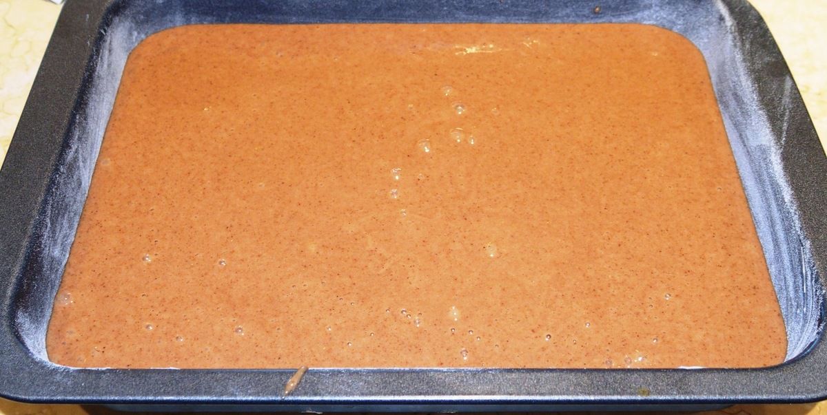 2) Beurrer et fariner la plaque et verser le mélange uniformément.