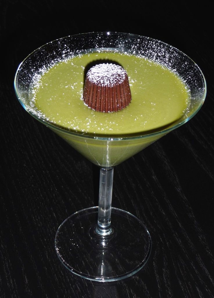 4) Verser immédiatement la crème dans les verrines en la filtrant à travers une petite passoire. Laisser tiédir.